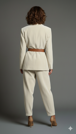 Completo giacca e pantalone in viscosa -Color Panna