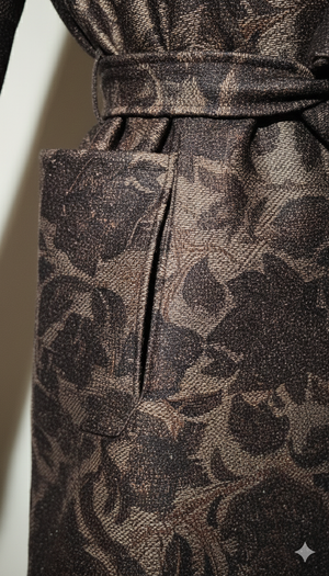 Realizzata in tessuto strutturato e morbido, presenta una fantasia floreale tono su tono che dona un tocco ricercato e femminile.
