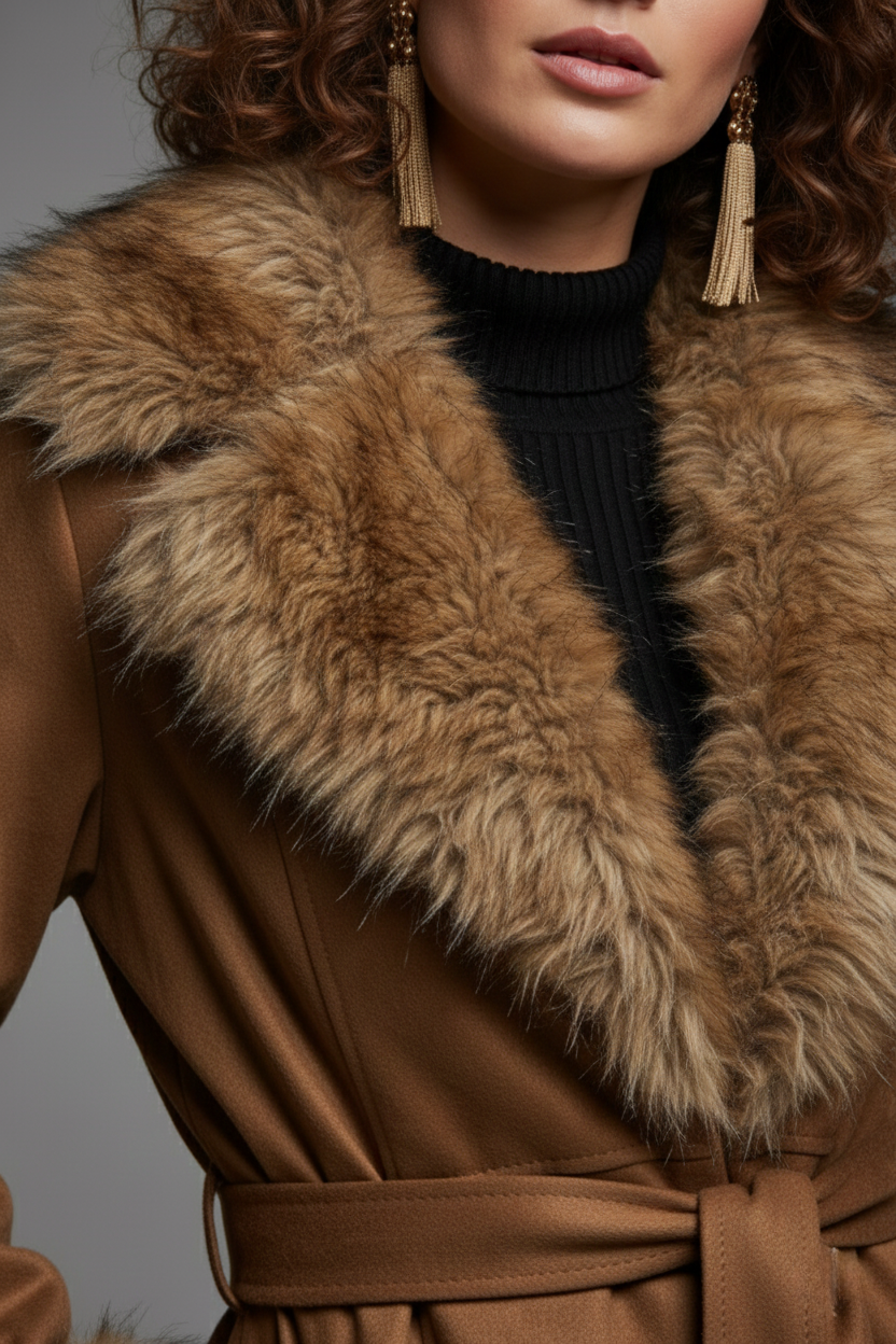 Cappotto Scamosciato con Ecopelliccia – “Winter Bloom Luxe"