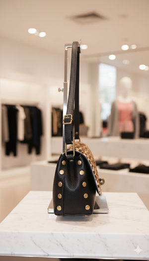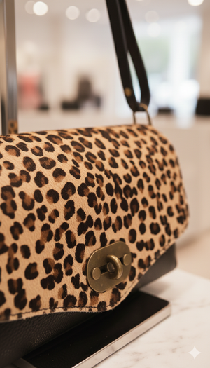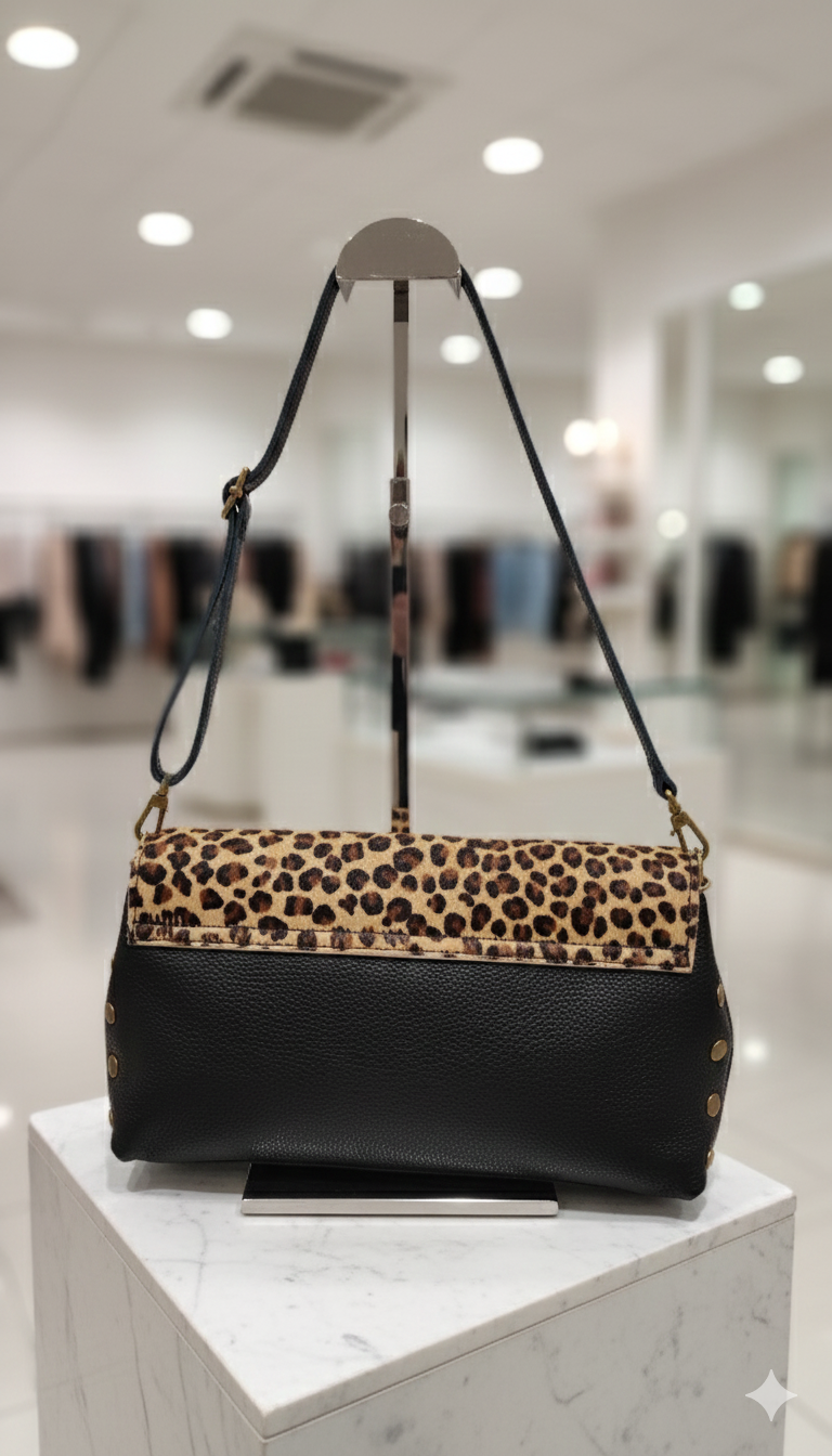 Borsa a spalla in cavallino stampa leopardata – Dettagli in pelle nera