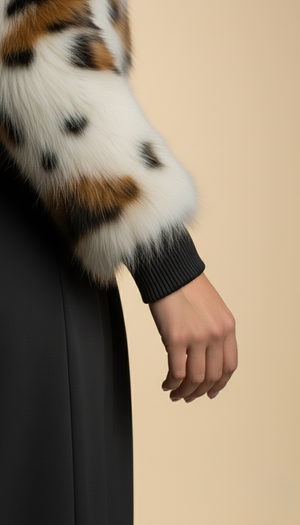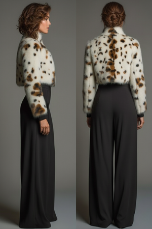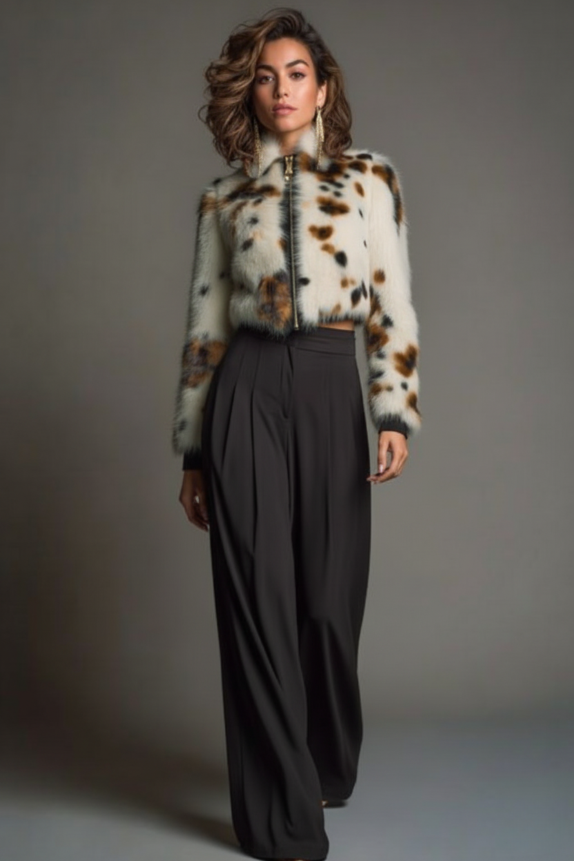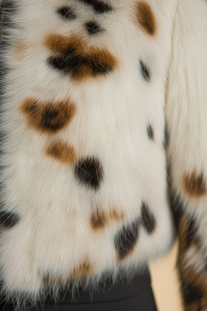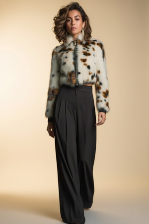 Giacca Bolero in Eco-Pelliccia Maculata “Winter Bloom” – Taglio Corto & Zip Frontale